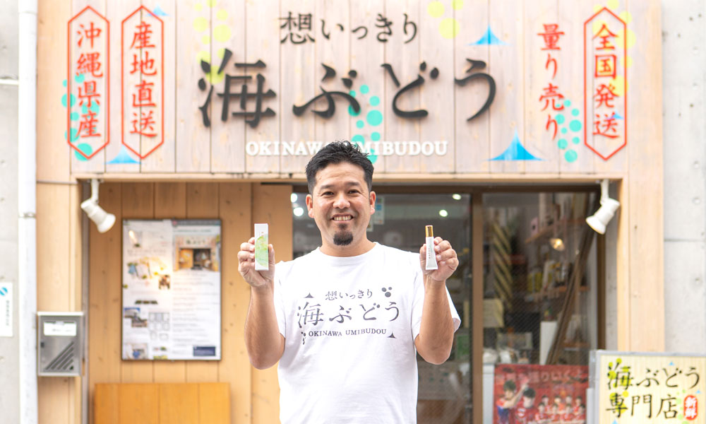 The idea for cosmetics using sea grapes was born from an episode told by Mr.Miyoshi, "An elderly woman who applied sea grapes to her hands made her skin shiny."
